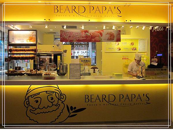 走進一樓大廳, 光是統一集團旗下商店就有STARBUCK、MISTER DOUNT、GOLD STONE 進駐, 也有AMO蛋糕專櫃, 還有賣看起來很好吃的泡芙 - BEARD PAPA'S (日式泡芙工坊)。 烤好的泡芙外殼掛在架上, 真顯眼, 奶油餡應該是結帳後再灌入, 要不是今天早上買太多東西, 我才不會站在店門口吞口水咧~