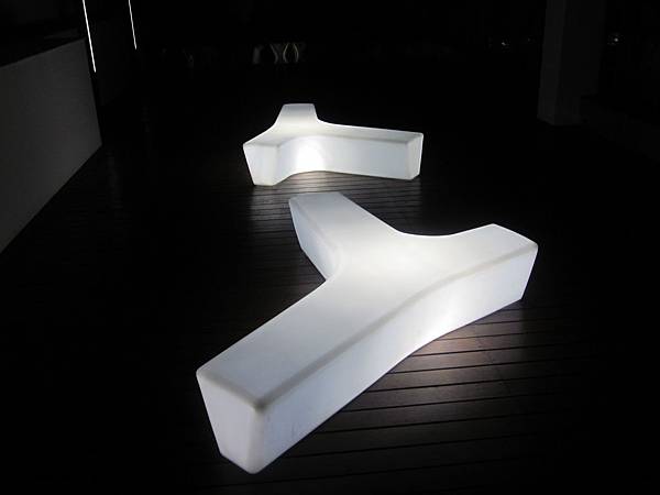 夜間會發光, 造價約五、六十萬元的藝術雕塑椅TWIG, 果然在夜晚展現出它的美。