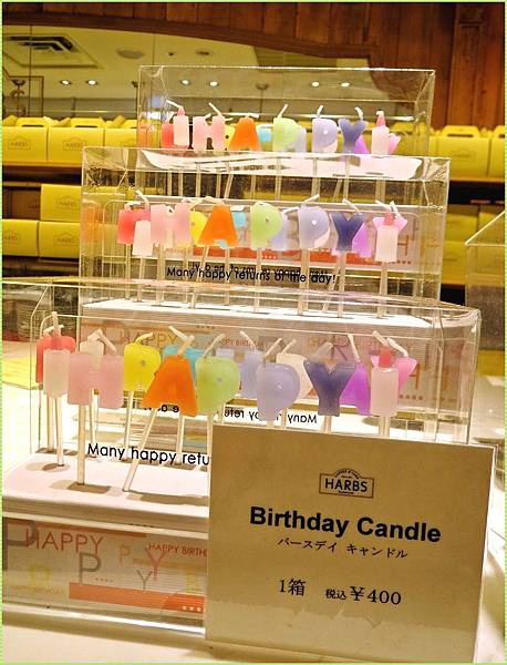 可愛的HAPPY BIRTHDAY蠟燭一組日幣400元。