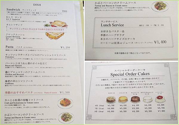 中午推出午間套餐日幣1,400元,含沙拉、義大利麵、蛋糕、飲料。