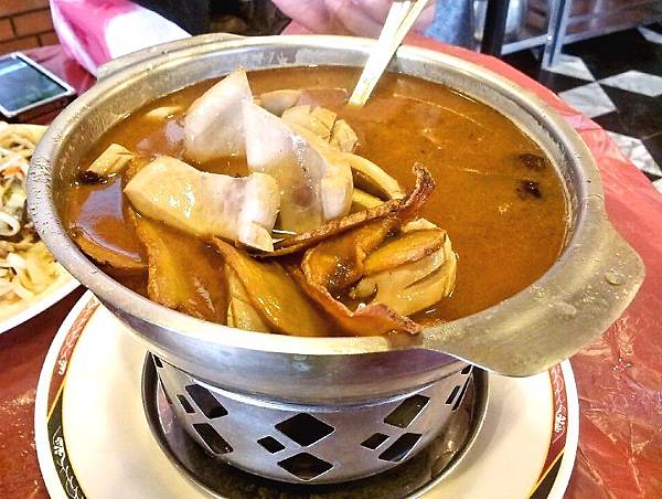 本想點個鳳梨苦瓜雞湯之類的,但每次都喝不完剩一堆打包回家,這次忍痛捨棄改選沒吃過的[麻油腰花]。熱騰騰的麻油腰花一上桌,忙著先將腰花撈出,以免過熟變硬,喝了一口湯,哇~這應該整鍋都是用酒去烹煮吧,好濃的酒味喔~