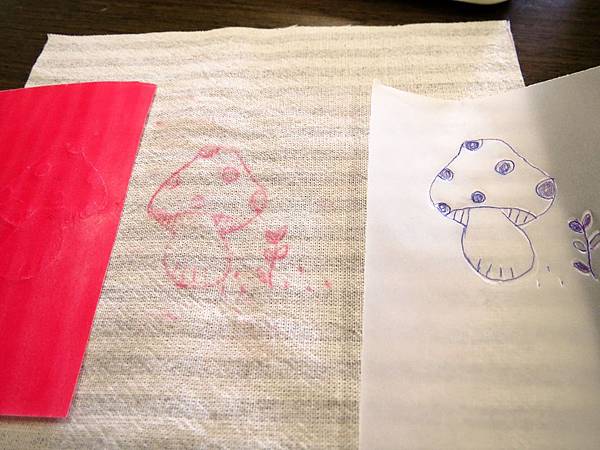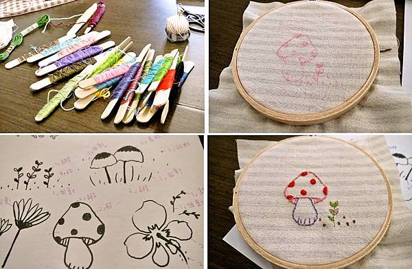 將布固定好在繡花框裡,因圖案不大,繡線取其中兩條細線即可,這香菇繡的還不錯吧~