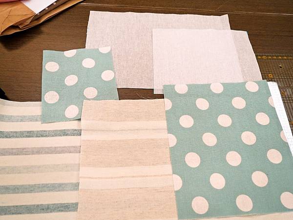 老師已將所需布料裁剪好,我們只須用熨斗將薄布襯跟布燙在一起,接著將布組合縫合起來就行了。