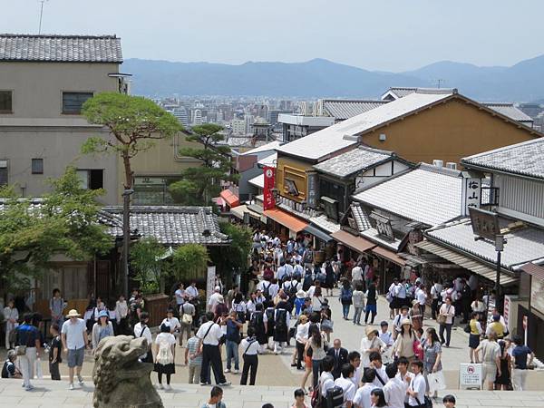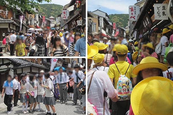 原本計劃京阪行先去大阪再來京都,但考量來清水寺時可能是周六或周日,不想遇到人擠人的場面,而將行程改為先京都後大阪,安排周五來清水寺,沒想到人算不如天算,竟然遇到日本中、小學生校外教學,這一大群活潑的小孩比觀光客更有活力,將清水寺周遭弄得好不熱鬧!