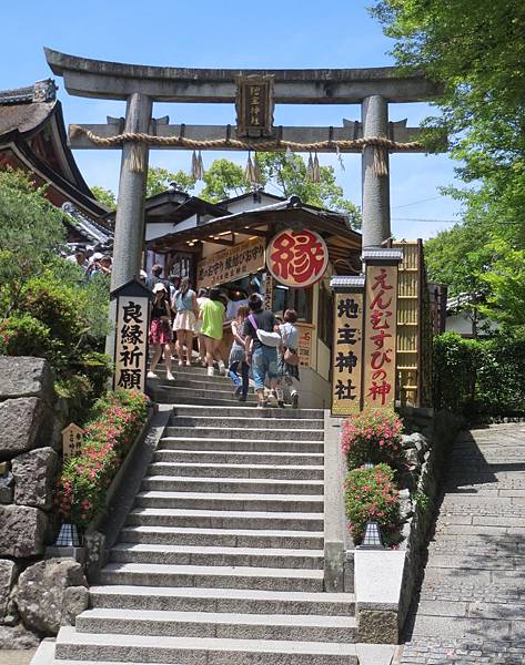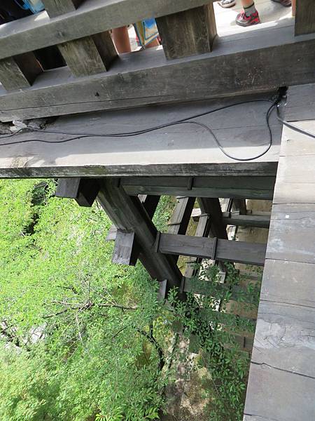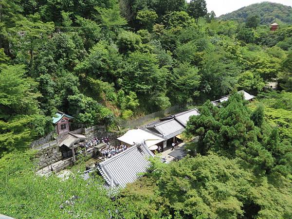 遠看清水舞台的下方排好多人,原來是日本名泉-音羽之滝(瀑布)。泉水分流成三道,分別代表長壽、財運、學業,寺方提供長杓讓遊客盛水飲用。想到下去還得走上來,我們就選擇在此看看就好。