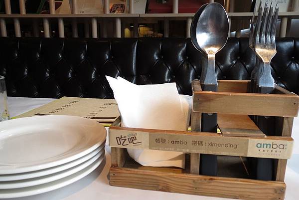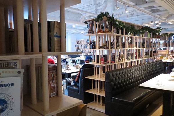 來到[吃吧]。空間還蠻大的,都用木頭書架當隔間,頗像藝文空間的裝潢。