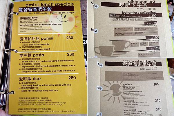 週末早午餐、下午茶、午餐等,有飯、有麵、還有帕尼尼,選擇還頗多的。