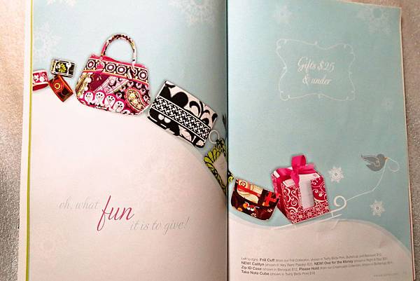 雖然美西行是三年前的事,但是這本[Vera Bradley]的目錄卻一直捨不得丟回收,因為覺得這家商品的圖案真美,這感覺就像當初發現"CATH KIDSTON"一樣,第一眼就喜歡上它了~